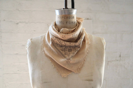 Oatmeal Classic Print Naturally Raw Silk Bandana -black ink