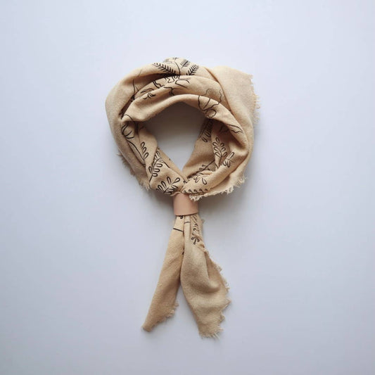 Oatmeal Botanical Print Naturally Raw Silk Bandana-black ink