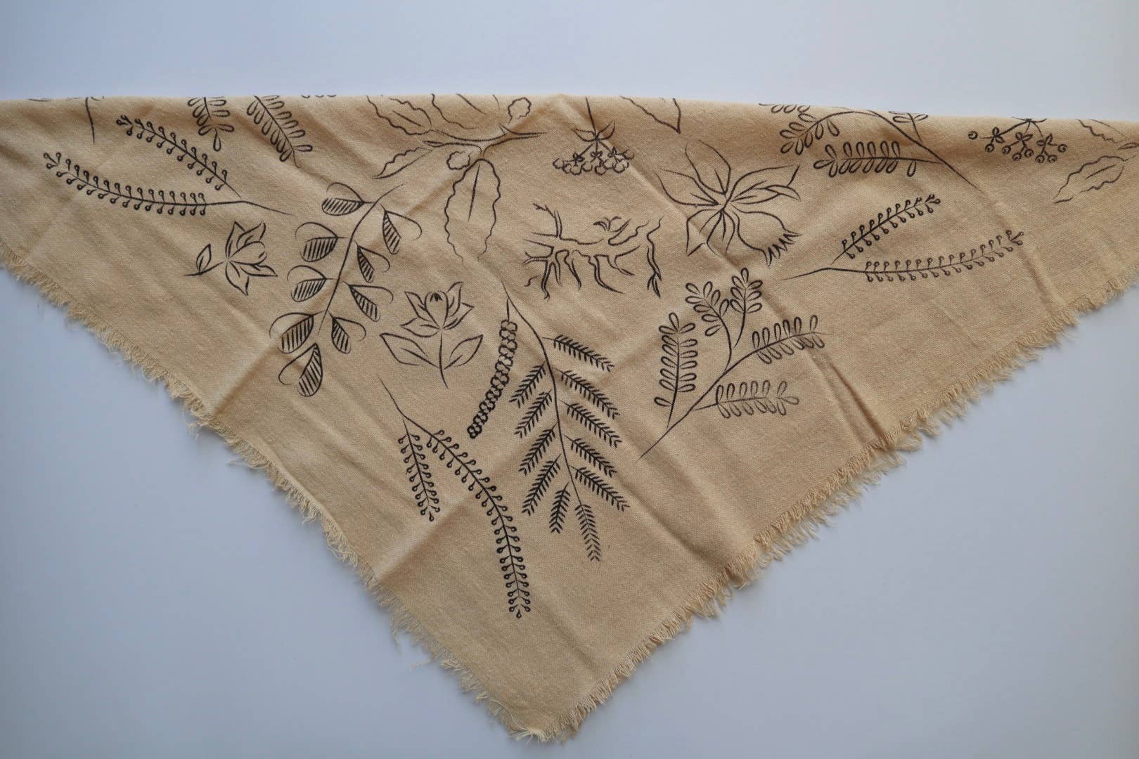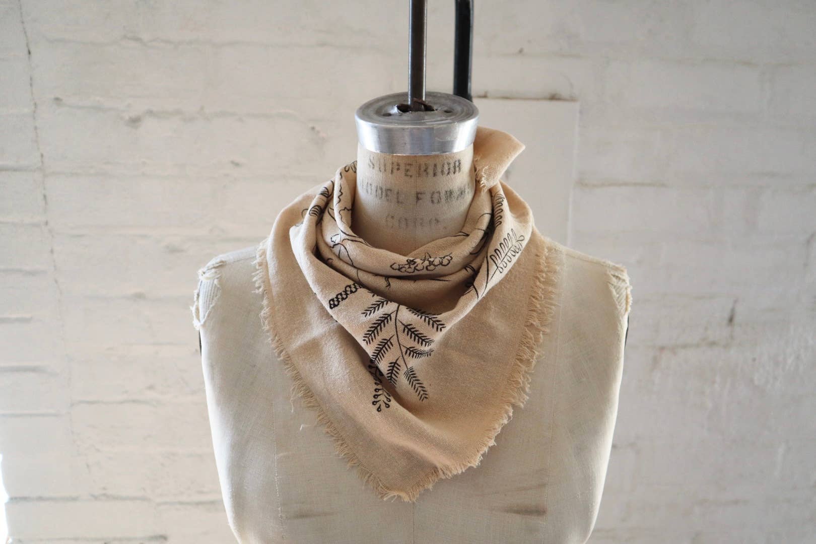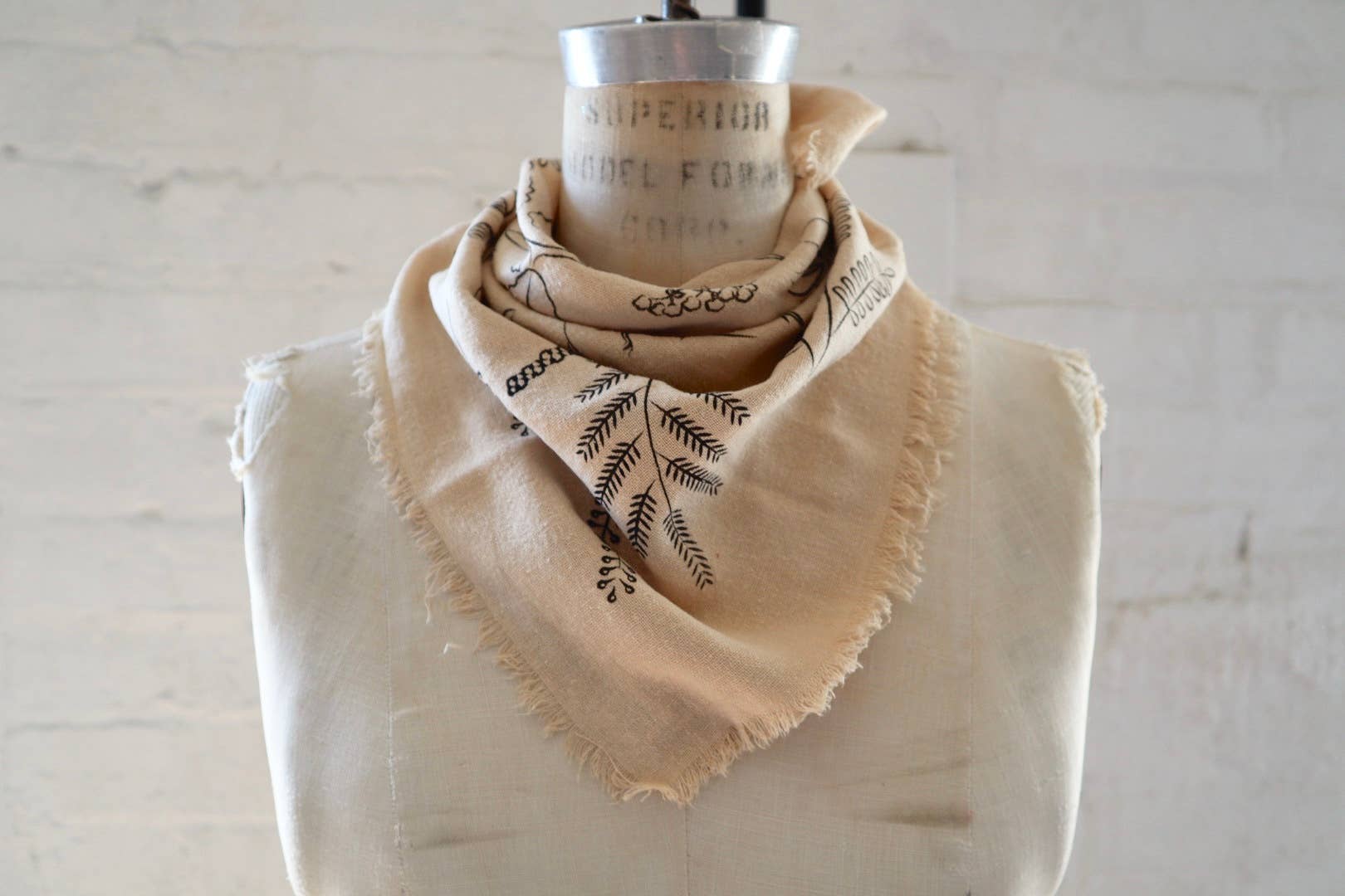 Oatmeal Botanical Print Naturally Raw Silk Bandana-black ink