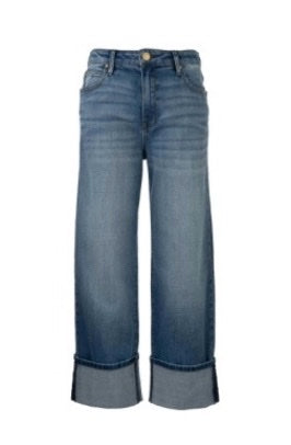 - Elevate your everyday with these high-rise straight-leg jeans in a timeless medium wash. The roll-up hem adds a playful edge, while stretchy fabric ensures comfort that keeps up with your day.