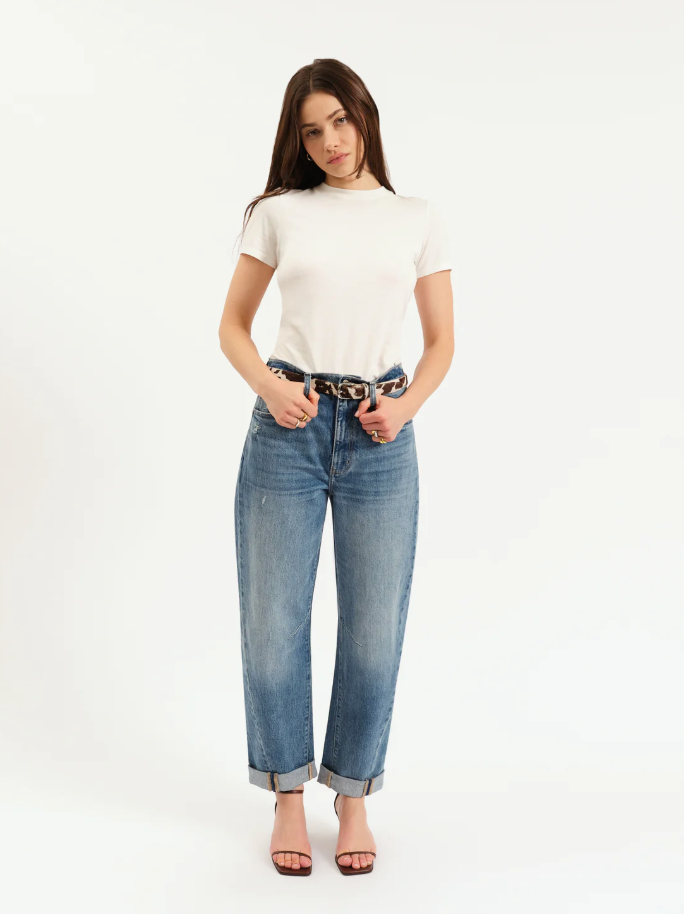 The Venice in The Blues is a high rise barrel leg featuring a pre-rolled cuff for a laid-back look.